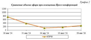 Таким образом, внимание к пресс-конференции КПРФ в 2026 году возросло в сравнении с апрелем и июлем 2024 г. Как и тогда, в освещении принял участие лишь один из пяти центральных телеканалов (график 2).