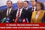 17 марта, предваряя пленарное заседание Госдумы, перед журналистами выступил Председатель ЦК КПРФ, Руководитель фракции КПРФ в Государственной Думе Г.А. Зюганов. «Вы видите, как усугубляется финансово-экономический кризис в целом в стране. Конечно,... читать дальше»
