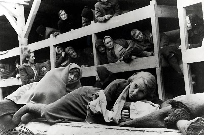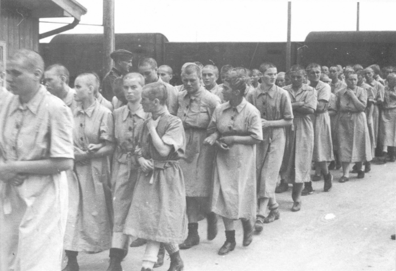 Зимой 1945 года немцы просто бросали тела жертв в бараках. Советские солдаты, освободившие концлагерь, в одном из бараков увидели ряды женских тел, занесенные снегом.
