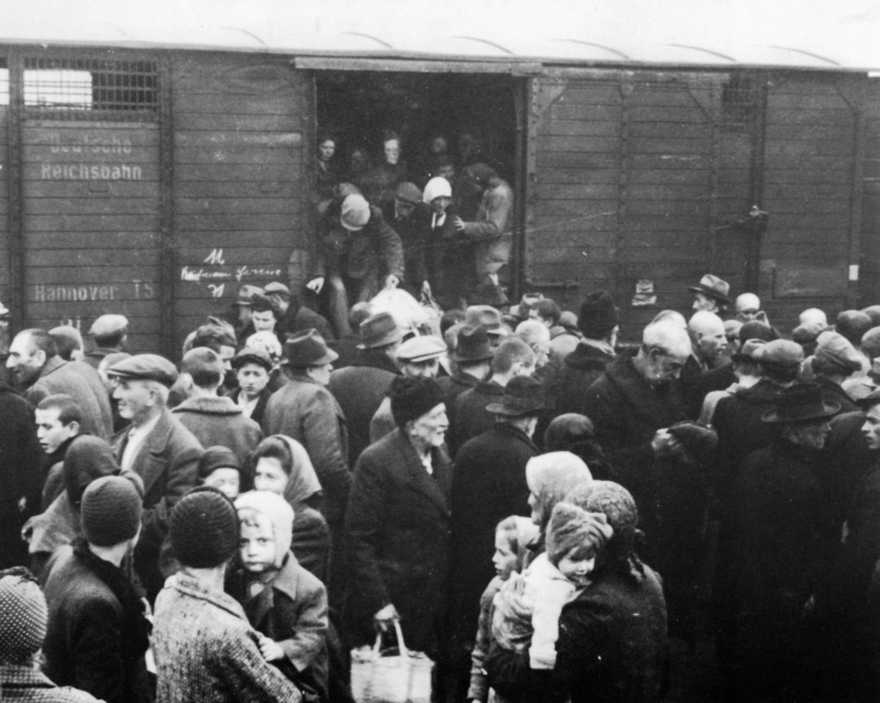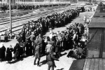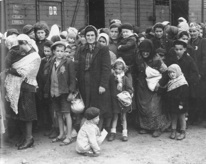 Евреи из Закарпатья у поезда после прибытия в концлагерь Освенцим.