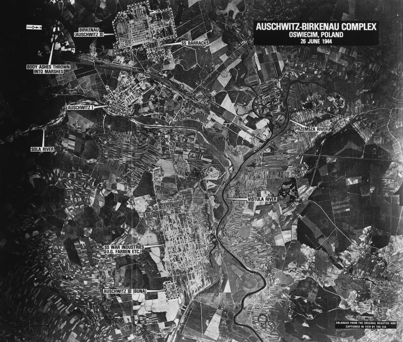 Освенцим. Фотография из кабины пилота американского бомбардировщика.