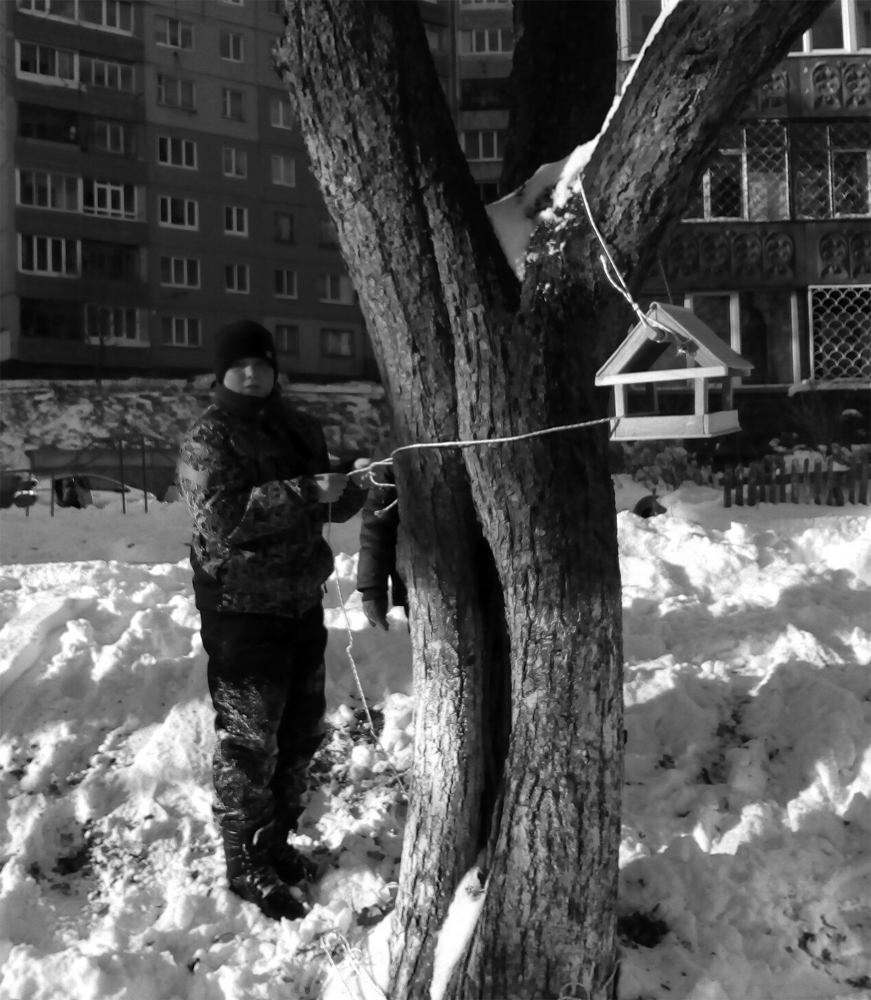 Тем временем по предложению комсомольцев (они же были и спонсорами) пионеры 25-й школы принялись за изготовление кормушек для птиц. Работы проводились под руководством учителя труда Светланы Витальевны Тиофеевой, которая отмечает, что не все виды работ были под силу пионерам - пришлось призывать на помощь одиннадцатиклассников. 22 января пионеры школы № 7 приняли кормушки и совместно с комсомольцами провели экологический десант, развесив кормушки в скверике на улице Русской, над которым шефствуют учащиеся 7-й и 48-й школ.