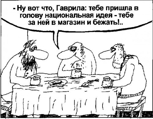 Взять, например, национальную идею. Двадцать четыре года суверенная наша Русь никак в толк не возьмёт, ради чего мы угробили великую страну, чтобы на её руинах сотворить такое вот чудо? У той была ясная и очевидная цель:построить бесклассовое общество свободных людей. А у нас что? Побольше нахапать, наворовать, а потом свалить куда-нибудь на Канары - и поминай, как звали? Хотя, конечно, это тоже идея. Но, согласно теории относительности, до поры до времени. Пока тебя не взяли за одно место и не сказали: не дёргайся, сиди смирно, иначе вместо Канар окажешься на... сами понимаете, где. Возможно, и на верёвочке.