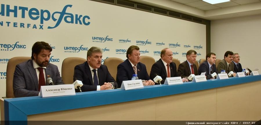В пресс-конференции также приняли участие заместитель Председателя ЦК КПРФ В.И. Кашин, заместитель Председателя ЦК КПРФ Д.Г. Новиков, член Президиума, секретарь ЦК КПРФ Ю.В. Афонин, ученый-экономист Ю.Ю. Болдырев, директор Совхоза имени Ленина П.Н. Грудинин, руководитель Пресс-службы ЦК КПРФ А.А. Ющенко.