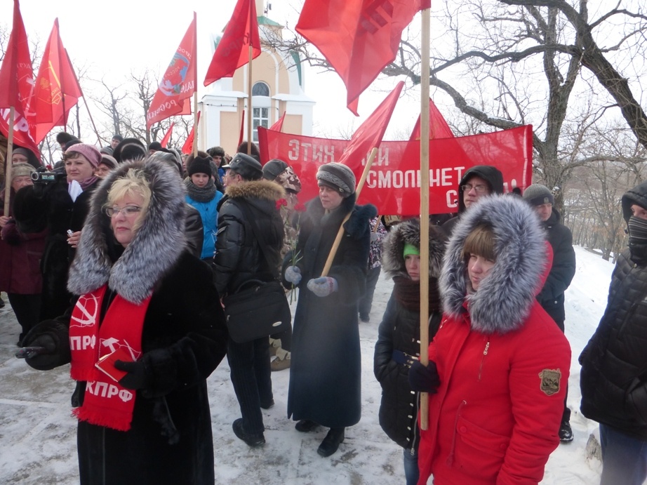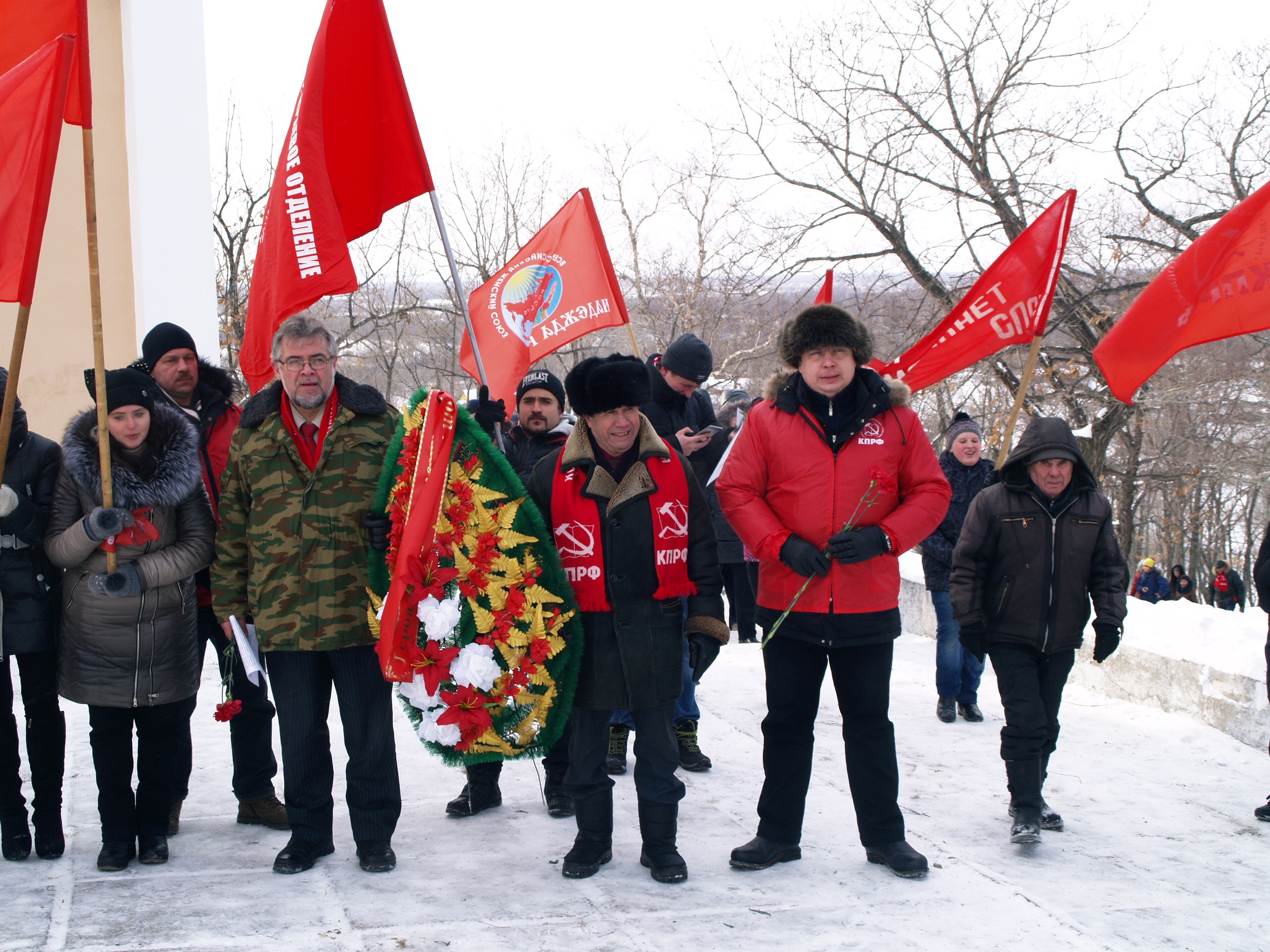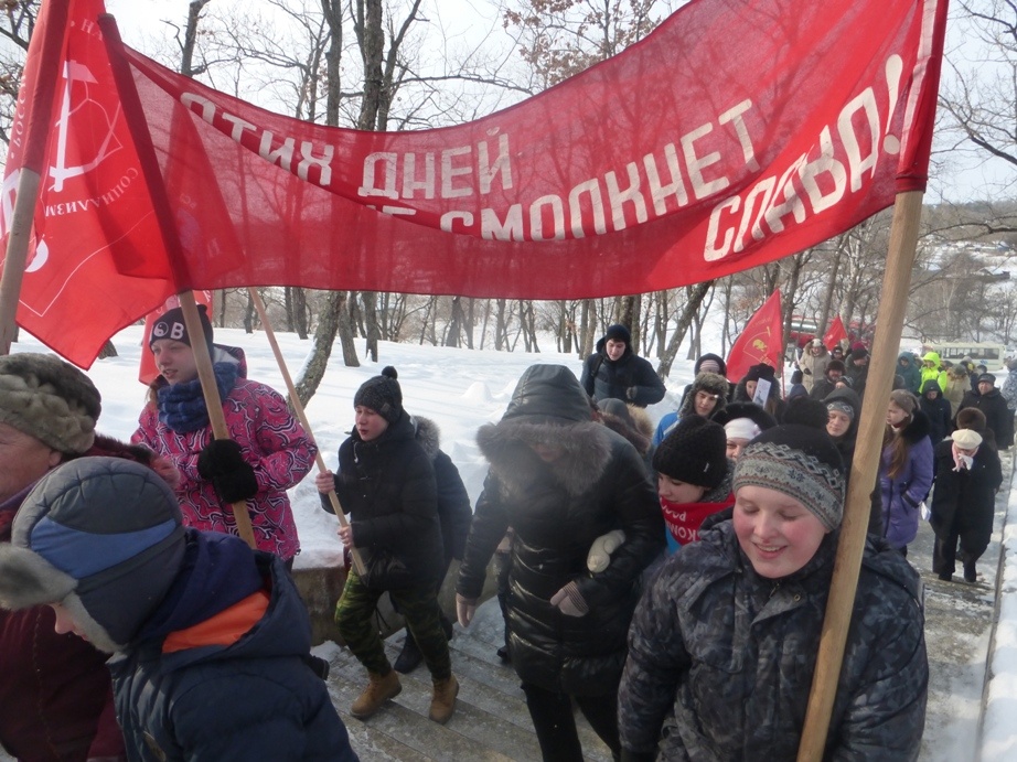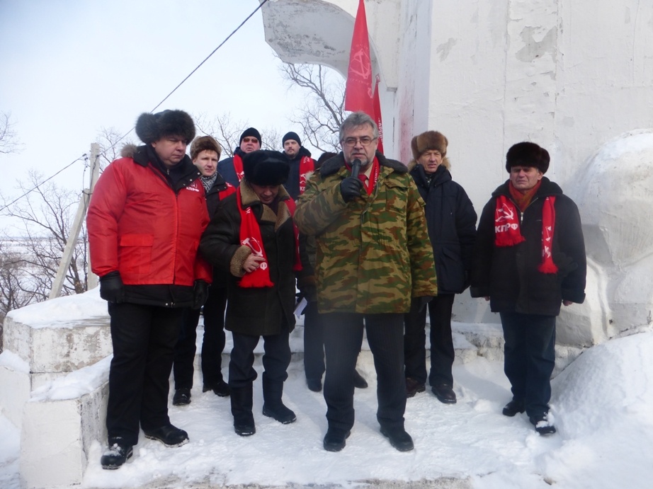 На митинге первый секретарь Еврейского обкома КПРФ В.Е. Фишман вручил партийные и комсомольские билеты молодым людям, в столь знаменательный день пополнившим ряды КПРФ. В ходе митинга выступили первые секретари областного комитета КПРФ ЕАО В.Е. Фишман, Хабаровского крайкома КПРФ А.П. Громов, Приморского крайкома КПРФ В.В. Гришуков и Амурского обкома КПРФ Р.А. Кобызов, а также депутат Государственной Думы от Хабаровского края и ЕАО К.А. Лазарев.