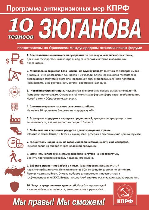 Отдел ЦК КПРФ по информационно-аналитической работе и проведению выборных кампаний предлагает вариант листовки с изложением антикризисной программы КПРФ.