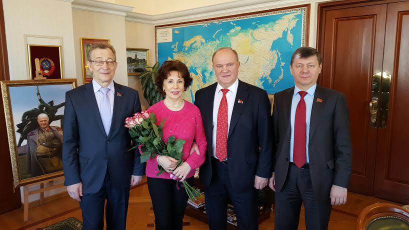 В четверг, 18 февраля 2016 года, состоялась встреча лидера КПРФ Г.А.Зюганова, его заместителя Д.Г.Новикова, Председателя Правления Движения "Русский Лад" В.Г. Позднякова с заслуженным деятелем искусств России, заслуженной артисткой России, художественным руководителем - директором Московского Дома Романса Г.С. Преображенской.