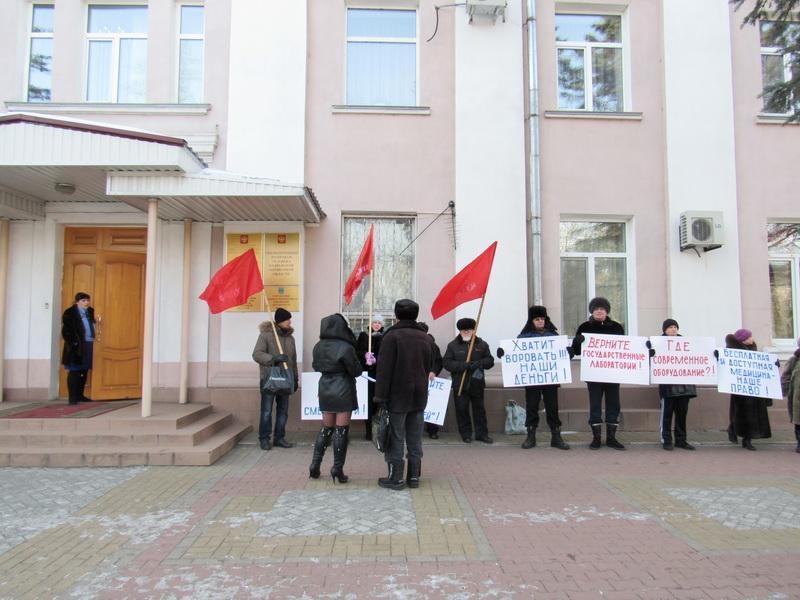 Оснастить медицинские учреждения Еврейской автономной области современным медицинским оборудованием, восстановить государственные лаборатории, обеспечить выполнение конституционного права граждан на бесплатную медицинскую помощь — с такими лозунгами вышли сегодня к зданию управления здравоохранения правительства ЕАО коммунисты Биробиджана.