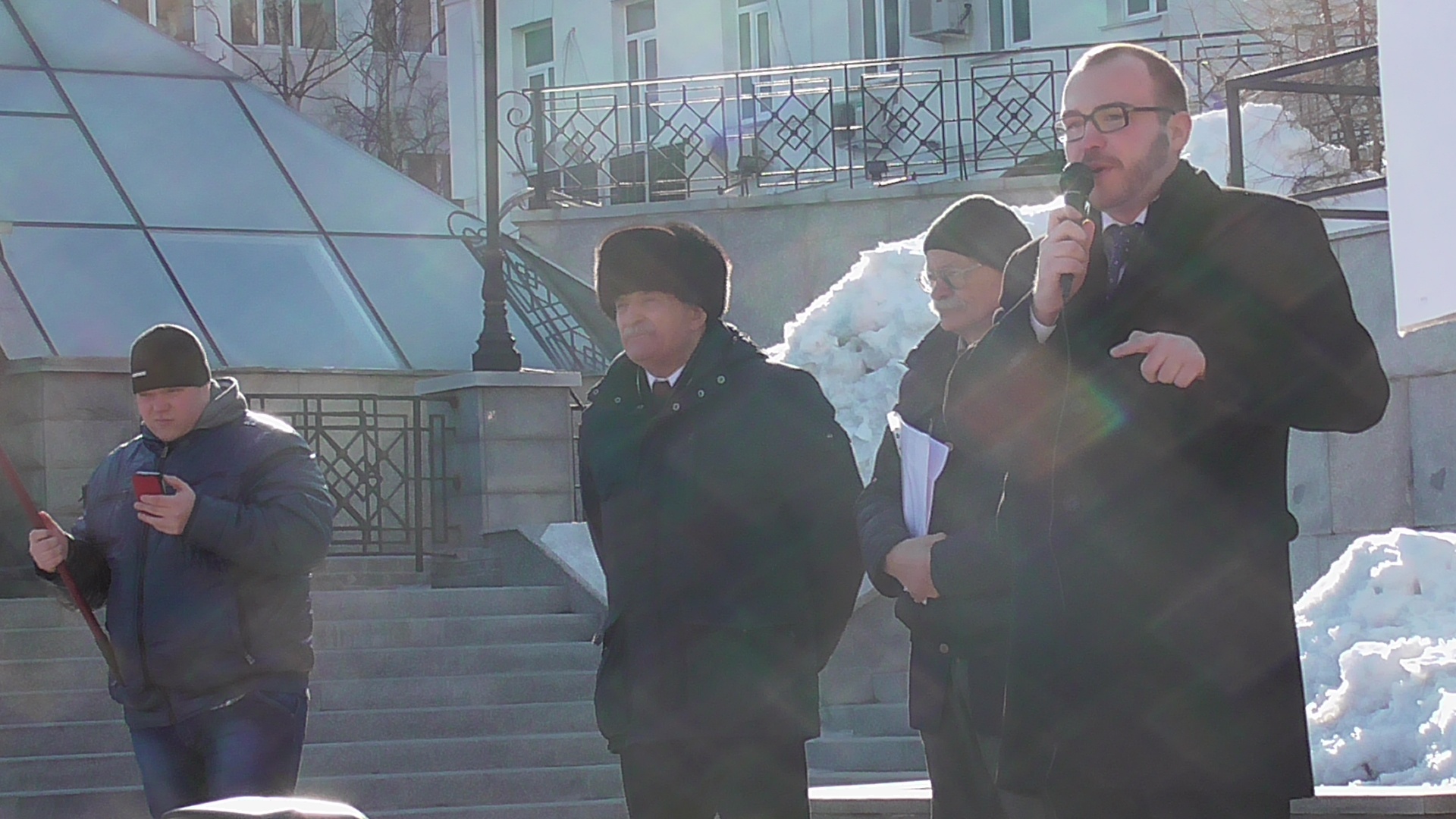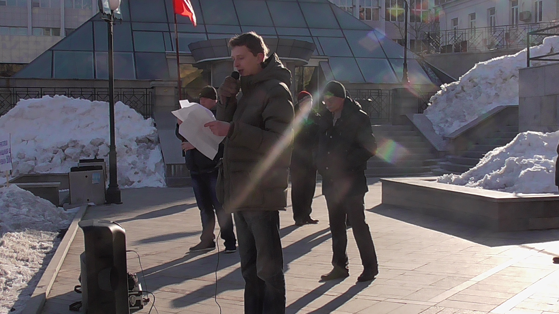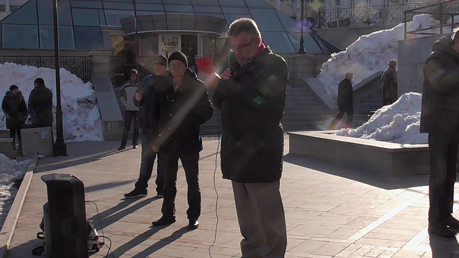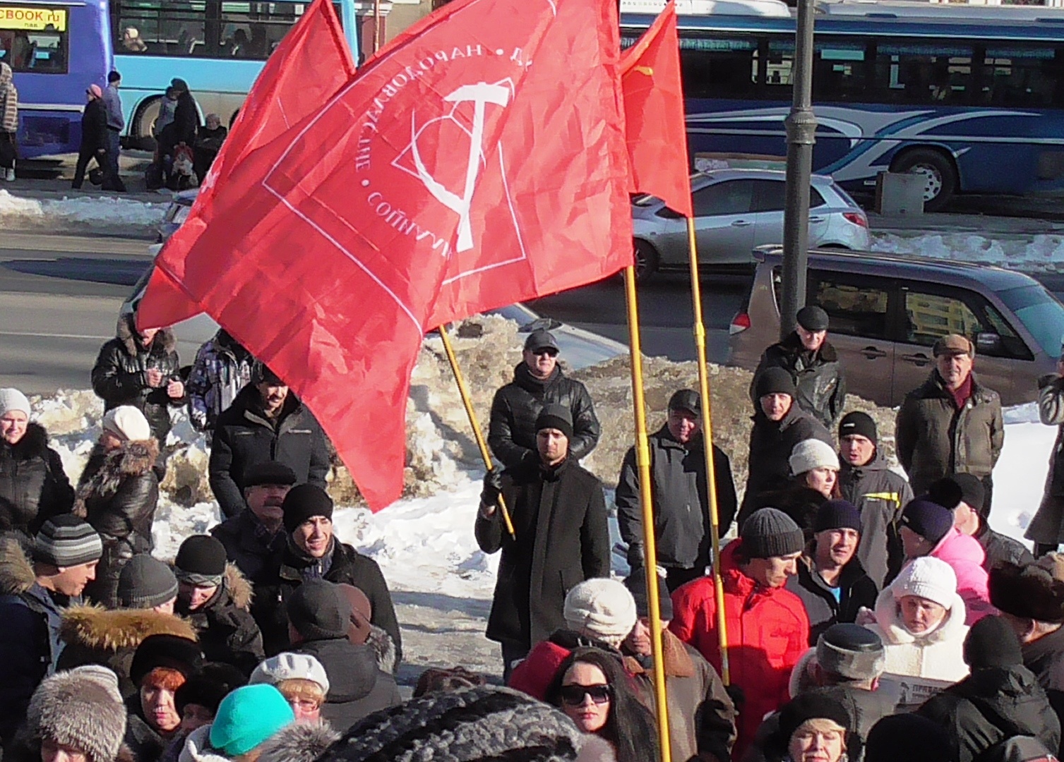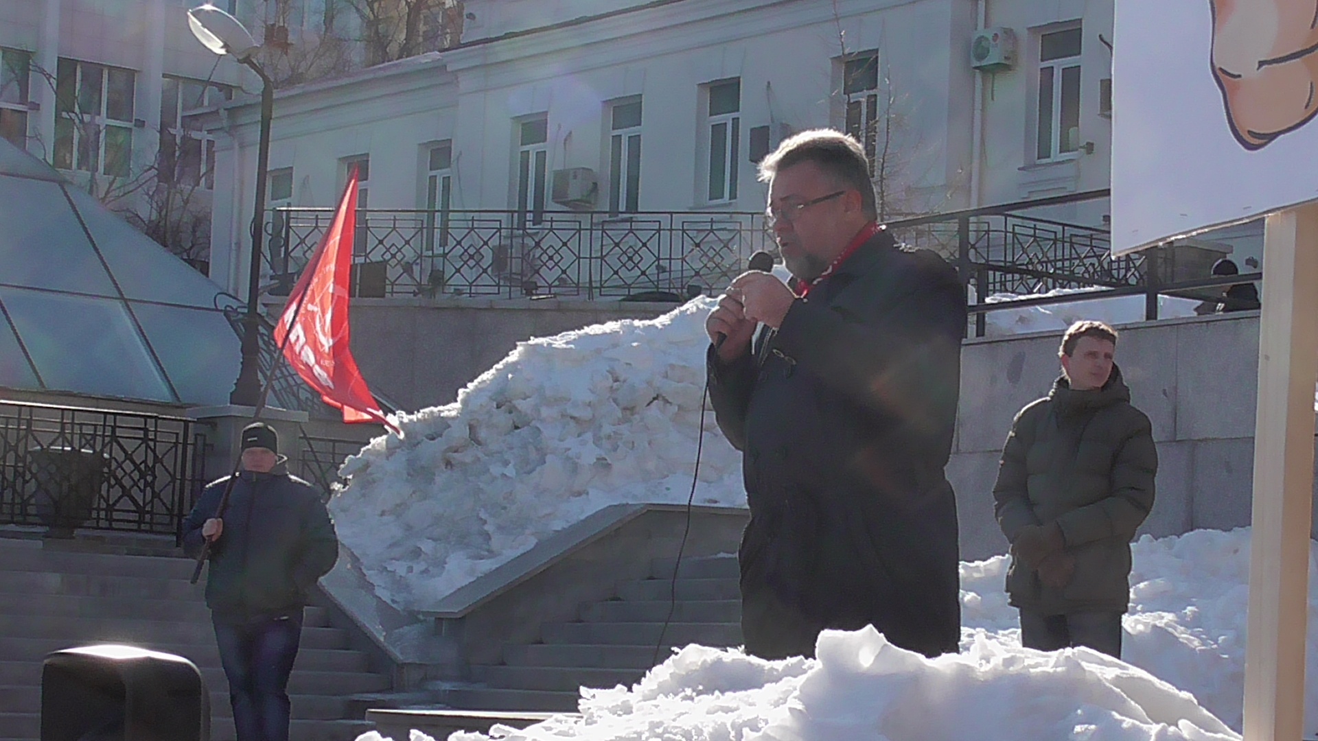 На митинге, прошедшем во Владивостоке 21 февраля прозвучали поздравления с приближающимся праздником 23 февраля - Днём Советской Армии и Военно-Морского Флота.