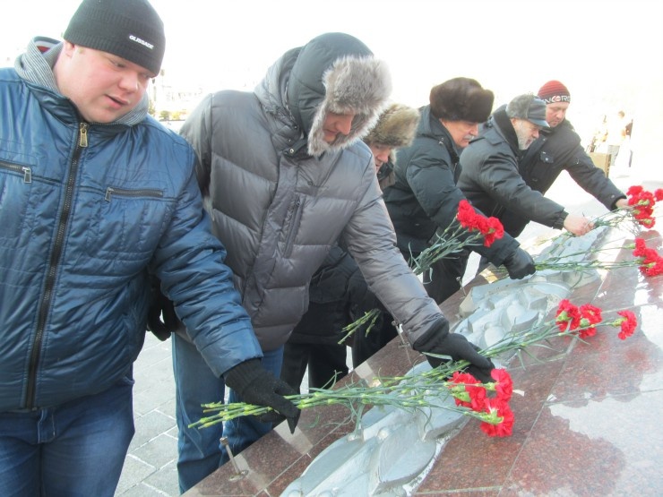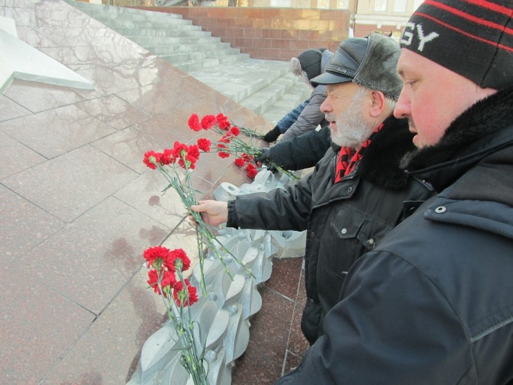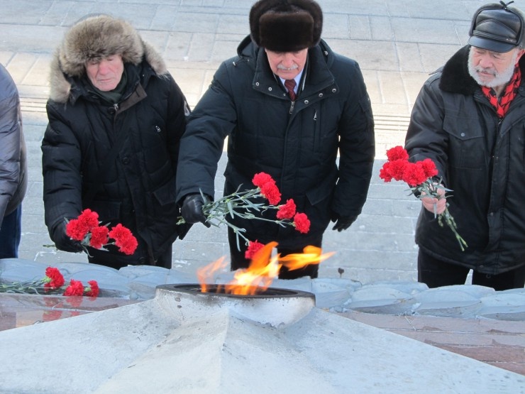 В честь Дня Советской Армии и Военно-Морского флота, коммунисты Владивостока возложили цветы к вечному огню мемориала С-56.