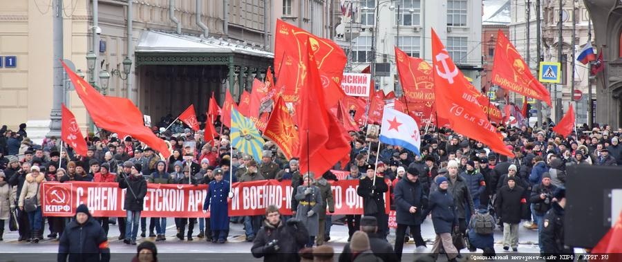 23 февраля в Москве состоялись шествие и митинг в честь 98-й годовщины Советской Армии и Военно-Морского Флота. Акция прошла под лозунгами «С Днем Советской Армии и Военно-Морского Флота!», «Армия, защити свой народ!»
