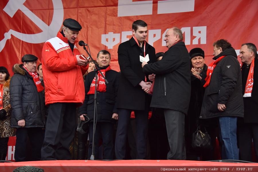 После выступления Геннадия Андреевича состоялось торжественное вручение партийных билетов новому пополнению КПРФ. Вручал билеты лидер Народно-патриотических сил России Г.А. Зюганов.