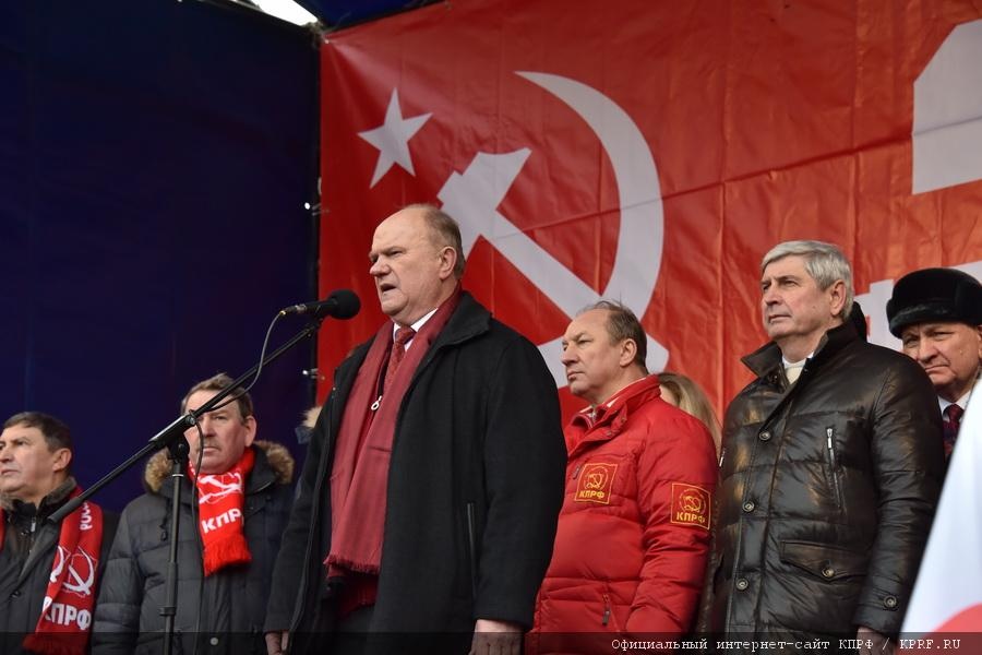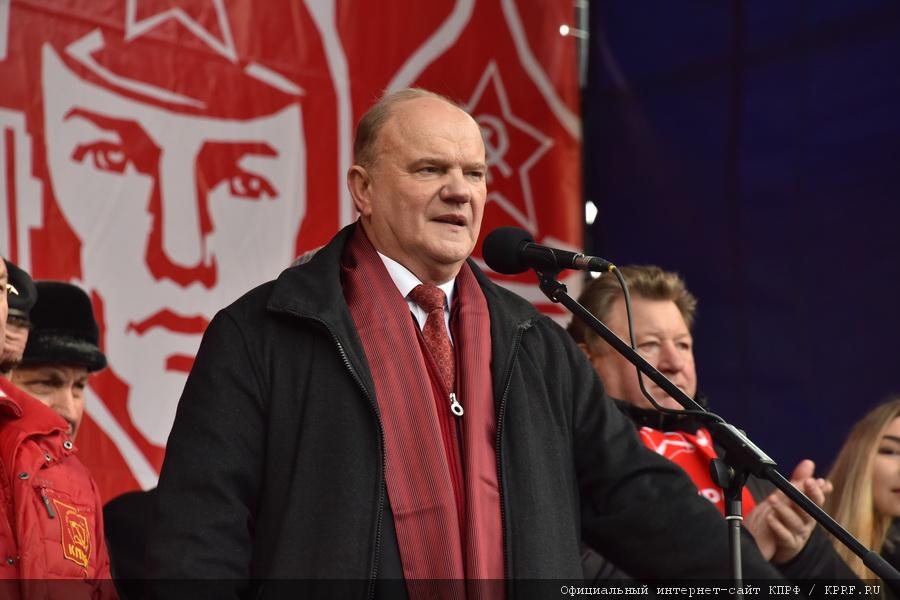 «Чтобы уверенно смотреть в завтрашний день и думать о будущем, мы обязаны прямо заявить: финансово-экономический курс, реализуемый внутри страны, который заложили предатели Великого Октября и нашей Победы, к несчастью, продолжается. Он привел к расстрелу парламента в 93-м и уничтожению Советской власти. Он привел к дефолту в 98-м и разрушению 80 тысяч предприятий. Он привел к кризису в 2008 году и к прошлогоднему обвалу финансов и экономики. Это курс предательства, и он отвергнут всем населением нашей державы», - с возмущением отметил лидер коммунистов.