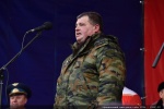 Поздравление участникам митинга от луганских коммунистов передал их лидер Игорь Гуменюк. Митингующие одобрительно встретили его сообщение о том, что недавно в Луганске был установлен бюст И.В. Сталина.