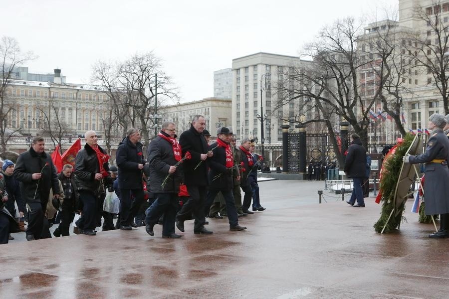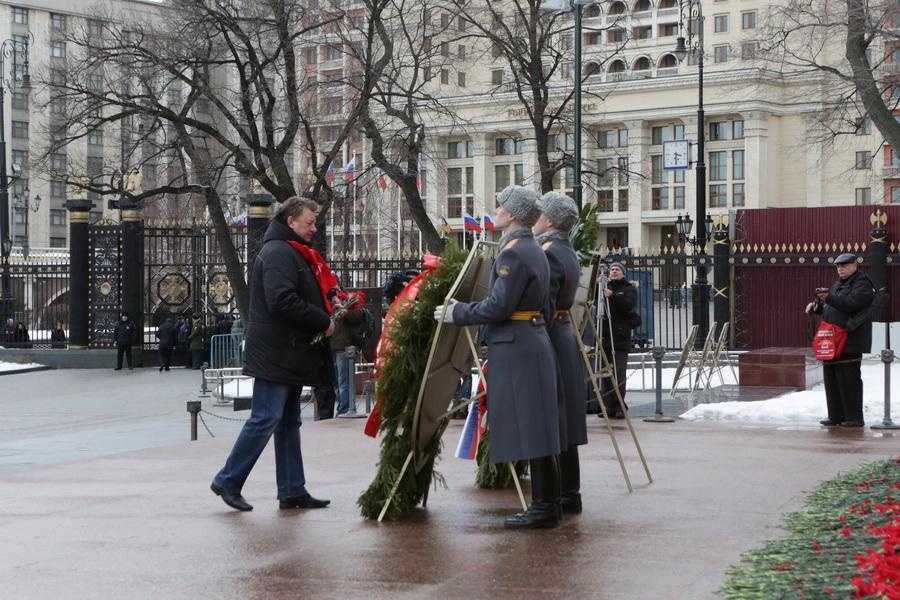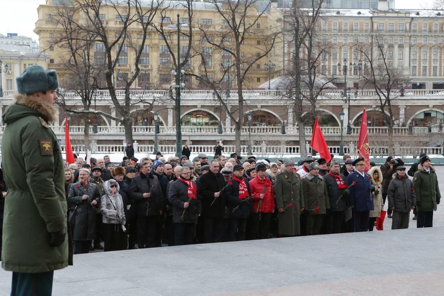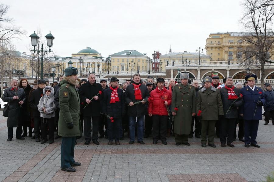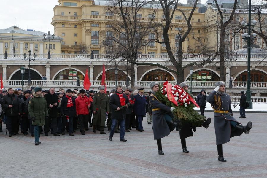 Во вторник, 23 февраля, в честь Дня Советской Армии и Военно-Морского Флота делегация Центрального Комитета КПРФ возложила венок и цветы к Могиле Неизвестного солдата у Кремлёвской стены.