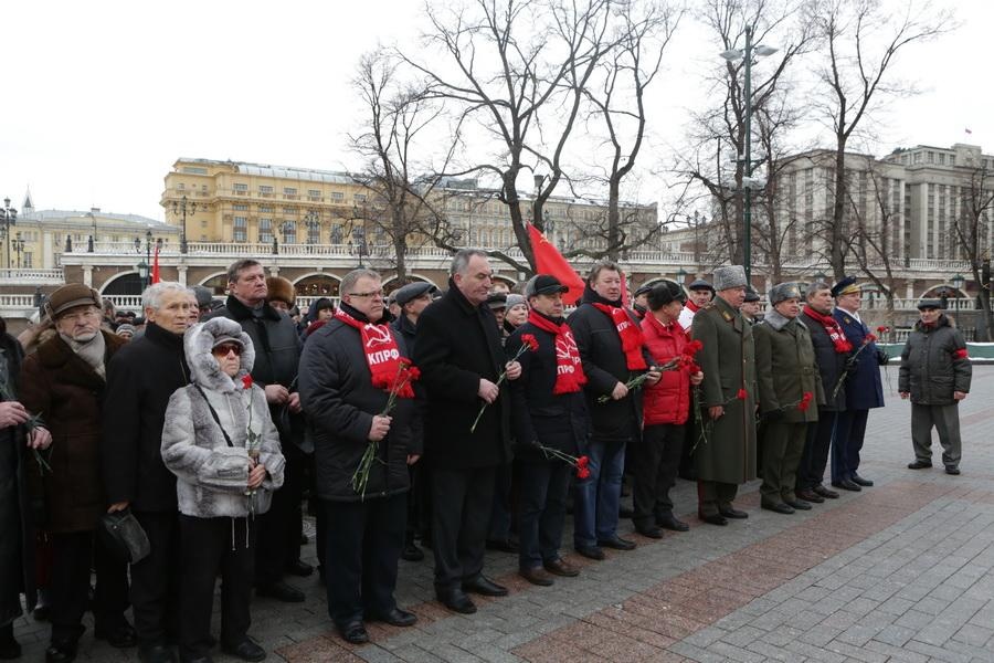 Память погибших в годы Великой Отечественной войны почтили заместители Председателя ЦК КПРФ В.И. Кашин, Д.Г. Новиков, В.Ф. Рашкин, коммунисты Москвы и Московской области, сторонники КПРФ, представители Движения в поддержку Армии, оборонной промышленности и военной науки, Международного Союза Советских офицеров. Затем колонна прошла к памятнику Г.К. Жукову. Здесь к монументу Маршала Победы также было проведено возложение цветов.