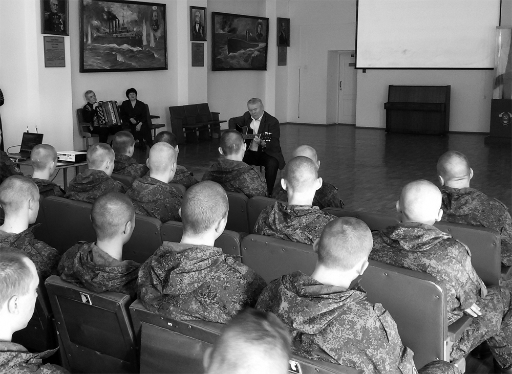 По доброй традиции, силами ВЖС «Надежда России» была в очередной раз организована праздничная программа для Роты охраны Штаба ТОФ. Л.П. Ткаченко представила свою женскую организацию, поздравила военнослужащих с праздником, выразив добрые пожелания и напутствия, вручила грамоту командиру подразделения. В ходе встречи перед бойцами-призывниками выступили с песнями ветеран Великой Отечественной войны, участник Курской битвы, полковник медицинской службы И.С. Ларцман, подполковник в отставке В.М. Морозов. Цикл великолепных песен собственного сочинения на военную тему исполнил под гитару заслуженный учитель РФ, преподаватель судоремонтного техникума С.О. Николаев. Танцевальные номера показали участницы ансамбля «Созвездие» под руководством В.А. Кирюшиной из школы №73. Л.П. Ткаченко рассказала о подвиге легендарного крейсера «Варяг», напомнив о том, что русская армия и флот во все времена являли собой образцы мужества и славы. Она подтвердила эту мысль, продекламировав стихотворение Н. Матвеевой «О гордом «Варяге». Эмоционально дополнила материал о «Варяге» Т.Н. Еськова. В конце праздника участники договорились о новой встрече, посвящённой Дню космонавтики.