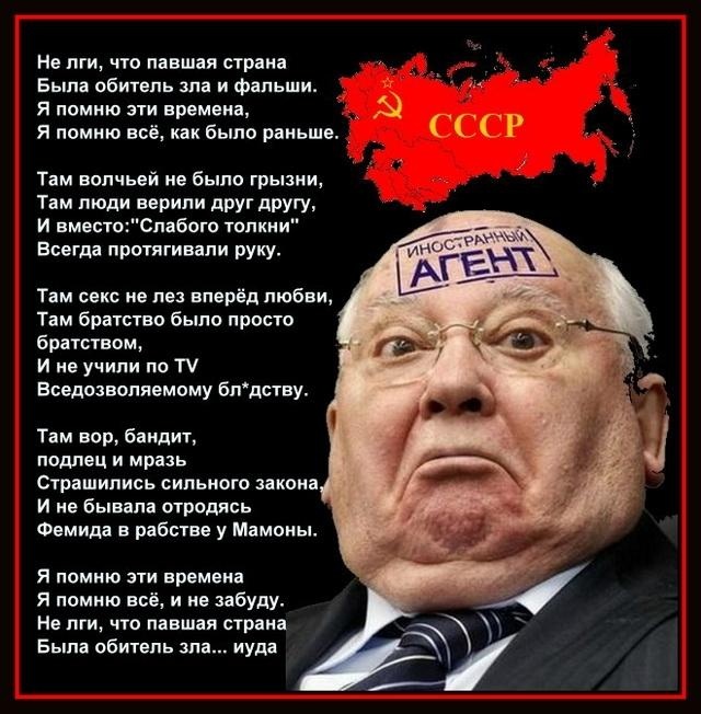 Долго еще можно перечислять «достижения» Предателя №1 Горбачева. Но в этом, собственно, нет особой необходимости. Его действия, его поступки и комментарии уже в последовавший период очень четко объясняют весь смысл руководивших его поступками мотивов. В речи на семинаре в американском университете в Турции Горбачев признался: «Целью моей жизни было уничтожение коммунизма… Именно для достижения этой цели я использовал свое положение в партии и стране».