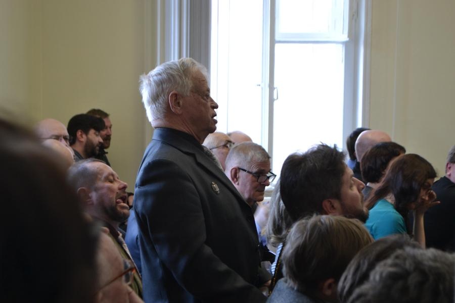 Стало ясно, что таким образом Смирнов намекал на некую «злочинну владу», которая де давит на бедных ученых и мешает легитимизировать власовщину, а так же на неких «доносчиков» (о доносах в зале тоже много говорилось), которые, де, «подняли шум».