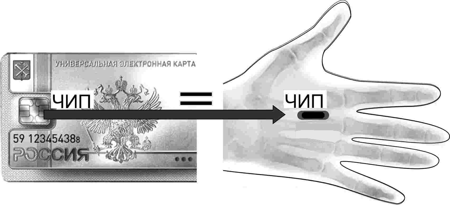 Чип – это та же самая УЭК, только вживляемая в тело человека. Это станет следующим шагом. Чтобы убедить людей в необходимости чипизации, им приведут примеры воровства и мошенничества и просто скажут: «Чтобы у вас никто ничего не украл, чтобы ваша карта всегда была с вами, нужно вживить чип в руку». Кстати, в Америке уже десятки тысяч людей добровольно проделали данную процедуру. С чипами всё гораздо проще - появляется возможность управления человеком. Через чип можно запросто воздействовать на его психику. Можно внушить ему что угодно, можно прямо приказать. Например, за кого голосовать. Можно воздействовать на физическое состояние человека, и даже убить (отключив чип). Начинается эпоха биороботов. Для чего? Чтобы создать глобальный электронный концлагерь, в котором все люди будут управляемы, перемещаемы, уничтожаемы. Начнут в приказном порядке с сотрудников силовых структур. Мол, начальству необходимо всегда знать, где находятся их подчинённые. Потом чипы будут вживлены всем гражданам.