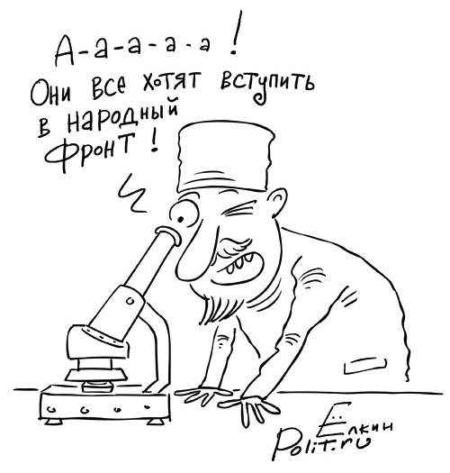 Но что хорошо для монархии, то неприемлемо для демократии, ставшей жупелом нынешнего режима, его главным и пока единственным достижением за всю четвертьвековую его историю. Слово это очень хорошее, только вот если копнуть поглубже и внимательно посмотреть, какая собака там зарыта, не найдёте вы под ним никакого народовластия - лишь неуёмную, ненасытную жажду одного какого-нибудь человечка вечно властвовать и повелевать. А дабы недовольство подданных, обираемых без стыда и совести жуликами всех мастей, именующими себя государевыми людьми, не подтачивало доверия к нему самому , надо уметь плохое вовремя обернуть себе во благо. Ведь тандем - это как рокировка в шахматах, дважды им не воспользуешься. Однако у ловкого игрока всегда должны быть в запасе хитрые ходы. Например, через пешку в ферзи. Так, чтобы никто не заметил. Или как, скажем, в старом немом кино про стекольщика, оставшегося без работы. Шагает он себе по улице со всеми своими причиндалами мастера за спиной, а навстречу ватага жильцов: ой, как вы вовремя, помогите, нам только-что хулиганы все стёкла в доме побили! Тот, ясное дело, рад стараться. А чуть поодаль, метрах в двухстах, бежит парнишка, его сынок и, прячась от случайных прохожих, прицельно лупит камнями по окнам - готовит папке фронт работ. Правда, нашим властителям в таких делах изощряться не надо - всё уже давным-давно побито, разрушено, разворовано, продано. Народ гневно требует: ЕдРо в ведро, а правительство в отставку. Самое время стеклить:объявить бой чиновникам-казнокрадам, мэрам-бездельникам и местным царькам-губернаторам. Ну и некогда родной партии власти, больше теперь известной как ПЖиВ. Мол, до чего народ довели, паршивцы, кайтесь, грешные души, да берите под козырёк - исправляйтесь пока не поздно! А чтобы люди видели, что спуску вам не будет за ваши скверны, вот вам ОНФ - Обероссийский народный фронт, мои глаза и уши, моя карающая десница!