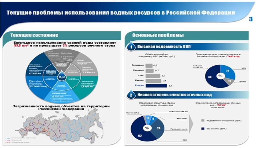 Прогрессирующее загрязнение водных объектов вредными веществами, а также истощение ресурсов подземных вод являются реальной угрозой национальной безопасности России, здоровью её граждан, дальнейшему ухудшению демографической ситуации в стране.
