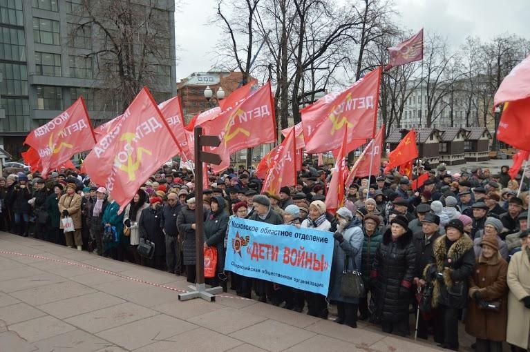 В центр Москвы к назначенному времени начали собираться люди. Они стояли плотно друг к другу, держали плакаты с лозунгами, красные флаги КПРФ, знамена СССР, комсомольские флаги, а также флаги с символикой общественной организации «Дети войны». Сюда с разных концов столицы приехали пожилые люди, многие из которых были с палочками. Прибыли «дети войны» и из Подмосковья. Поддержать старшее поколение пришли комсомольцы и молодежь. Перед началом мероприятия звучали песни военных лет, песни сопротивления, песни, посвященные «детям войны». Все это создавало особый эмоциональный фон, способствовало подъему настроения.