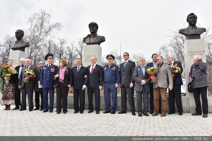 Были открыты бюсты летчикам-космонавтам, дважды Героям Советского Союза С.Е. Савицкой, В.В. Лебедеву, А.П. Александрову и В.А. Соловьеву. Памятники были созданы за счет бюджета города Москвы (все четыре космонавта являются москвичами). Активное участие в этом проекте приняли коммунисты. Выступившие космонавты поблагодарили КПРФ и ее лидера Г.А. Зюганова за содействие в установке бюстов.