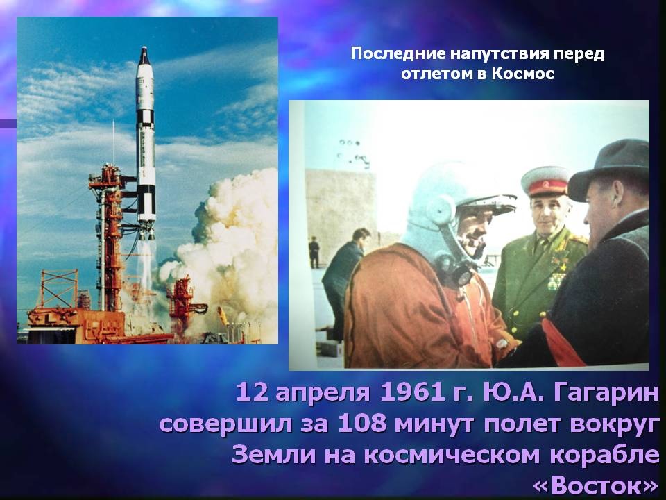 Первый полёт человека был самым трудным и опасным, но стремление к покорению космоса многих тысяч людей, принимавших участие в его подготовке, преодолело все преграды. До этого момента были запуски в космос искусственных спутников, но в этот день советский человек впервые покорил космос.
