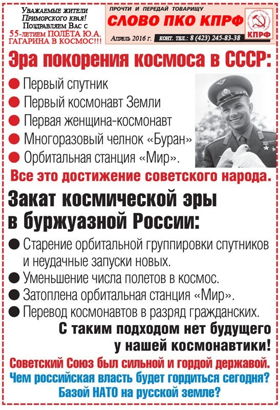Сердечно поздравляем Вас с 55-летием полёта первого советского космонавта Ю.А. Гагарина!!!