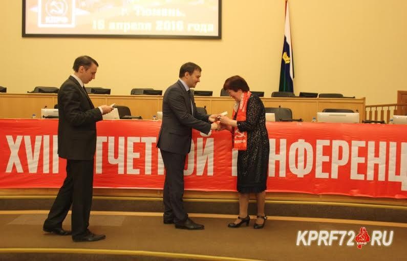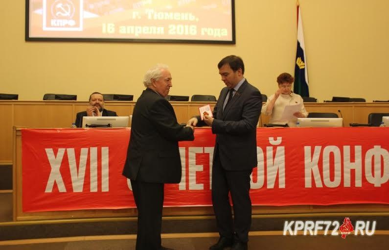 Член Президиума ЦК КПРФ вручил партийные билеты коммунистам, вступившим в ряды партии накануне Конференции. Среди них студенты, медработники, повар, пенсионеры, всего 16 человек. Каждому новоиспечённому партийцу гость из Москвы лично пожал руку и сфотографировался на память. Орденом «За заслуги перед партией» был награжден делегат от Исетского райкома КПРФ Валерий Петрович Сорокин.