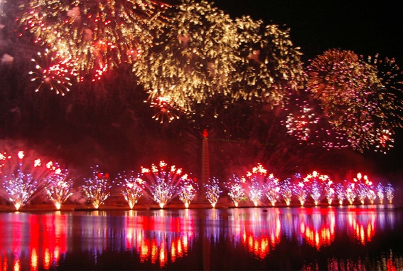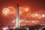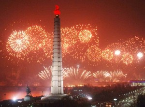 Вечером по случаю Дня Солнца в столице Пхеньяне был праздничный фейерверк.