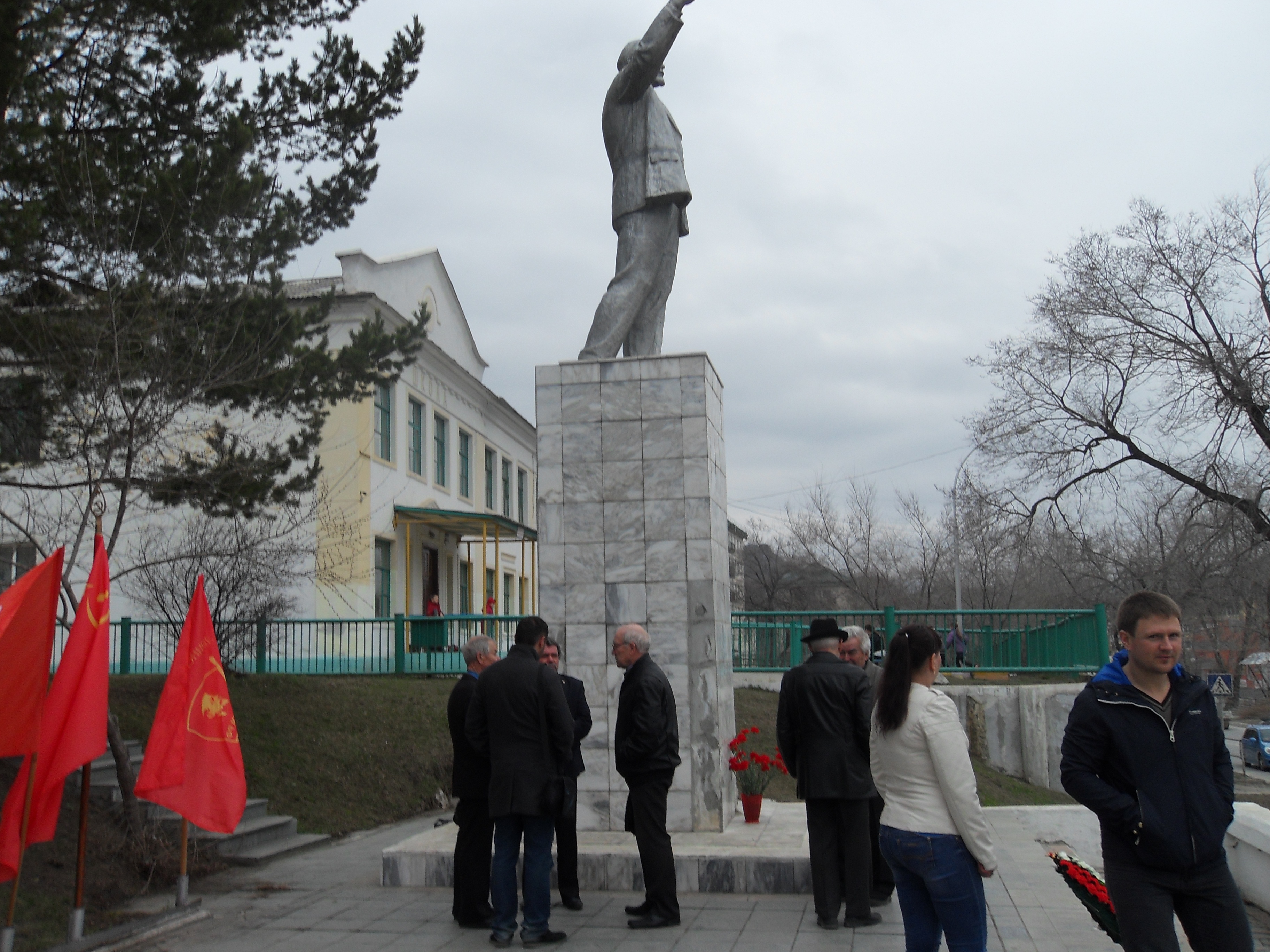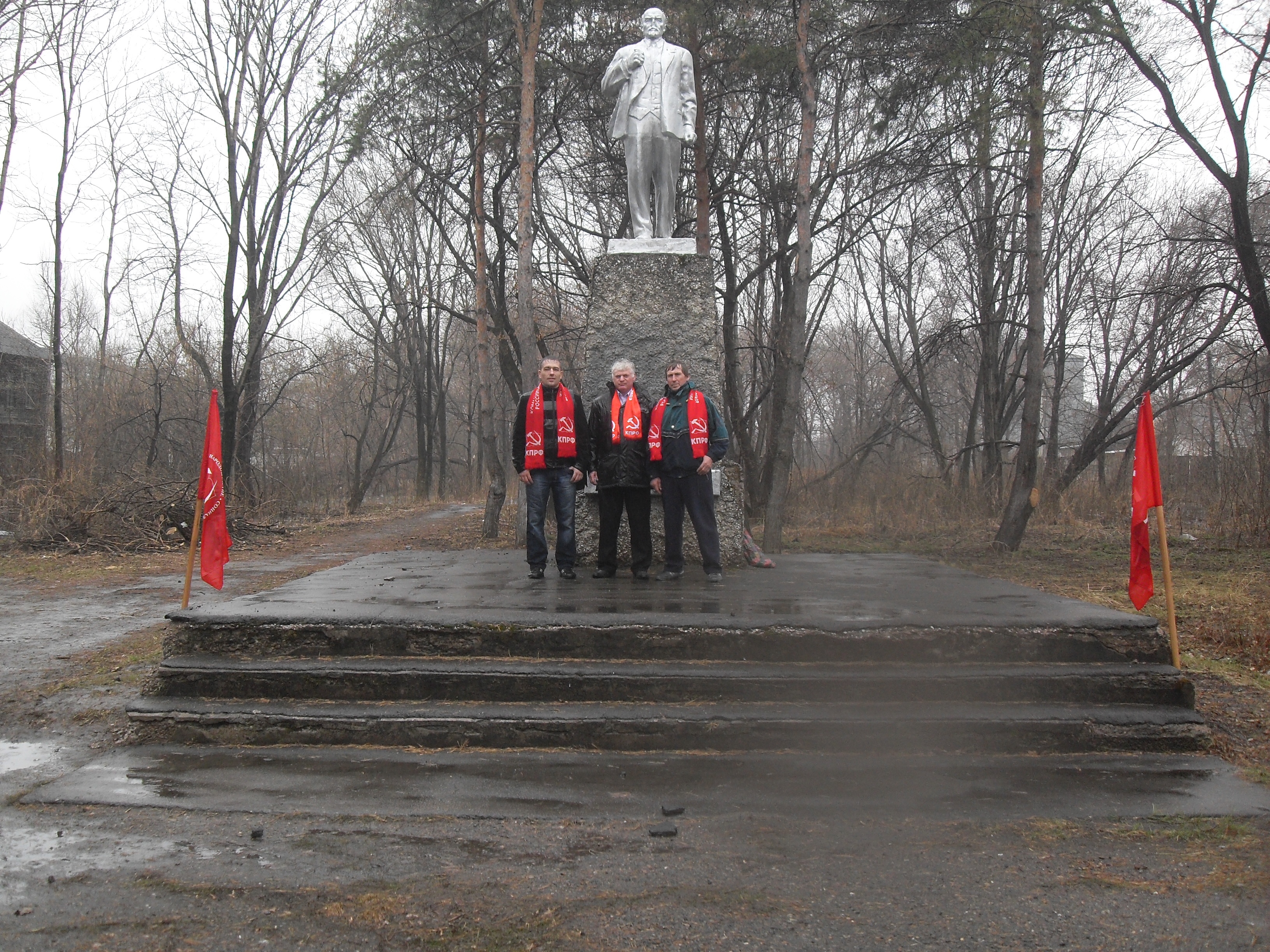 В г. Находка в день 146-ой годовщины со дня рождения В. И. Ленина собрались коммунисты и сторонники партии, чтобы еще раз вспомнить Ильича, создателя и руководителя 1- го государства трудящихся, и, как дань памяти возложить ему цветы. Выступающие говорили об идеях Ленина, о социализме, о нынешней коррумпированной власти, о предстоящих выборах. К коммунистам присоединились комсомольцы городского отделения ПРО ЛКСМ РФ.
