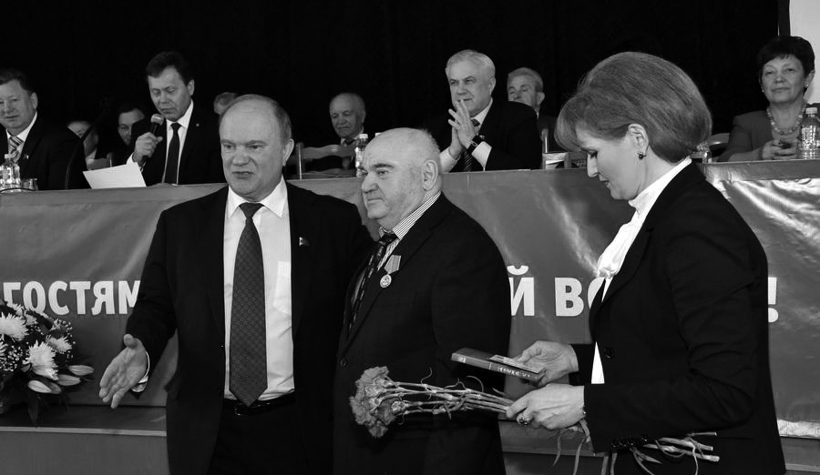 | Г.А. Зюганов на съезде вручает награду от КПРФ председателю правления Приморского регионального отделения ООО «Дети войны» И.И.Буленку |