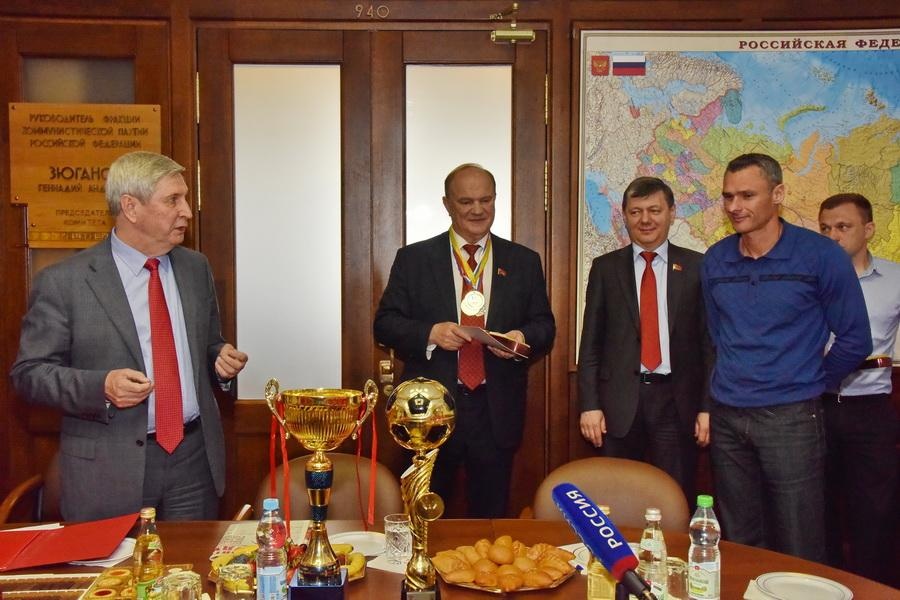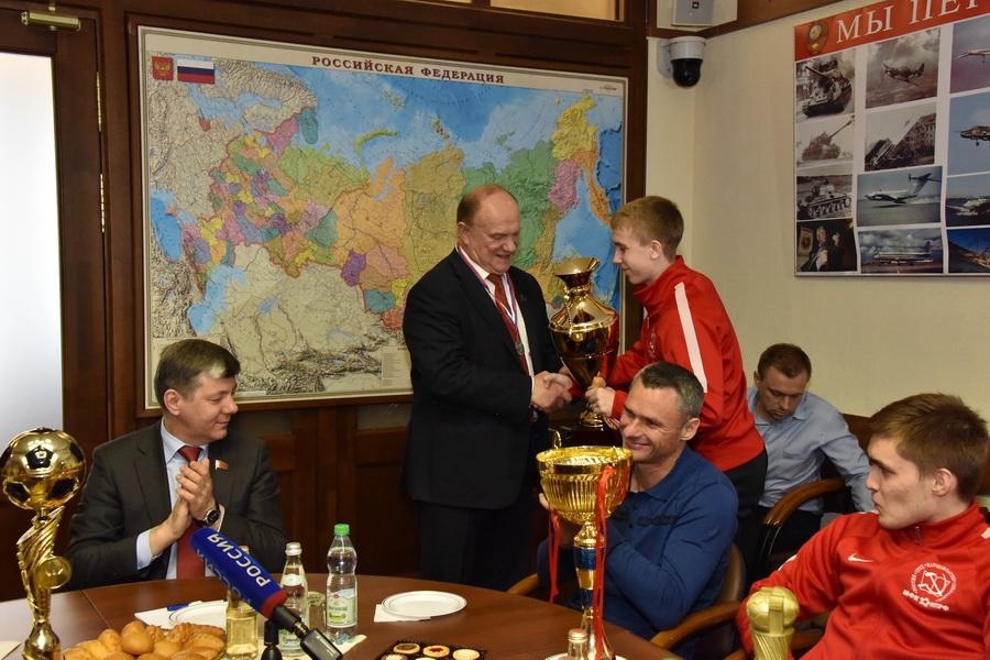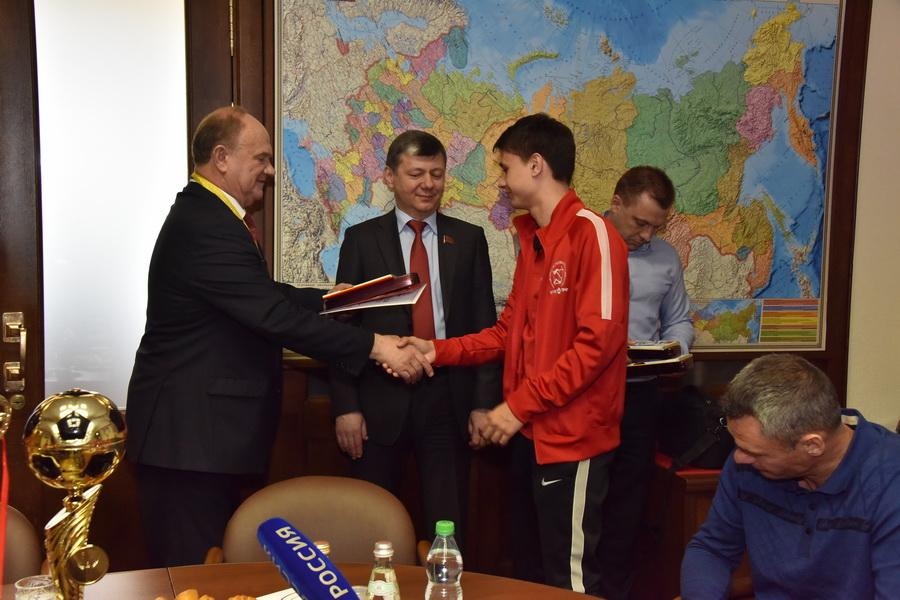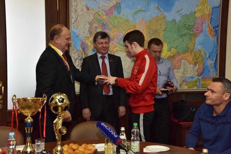 Лидер российских коммунистов поздравил футболистов с многочисленными победами в этом году, отметив, что молодежная команда КПРФ по мини-футболу является авангардом спортивного клуба КПРФ. Всем спортсменам были вручены ценные подарки с коммунистической символикой и почетные грамоты «За серьезные спортивные достижения и укрепление авторитета партии».