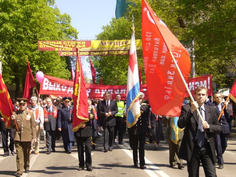 В одной колонне прошли москвичи и гости столицы. Руководители КПРФ и рядовые члены партии. Комсомольцы и несоюзная молодёжь. Члены общественных организаций "Союз Советских Офицеров" (ССО), "Движение в поддержку армии, оборонной промышленности и военной науки" (ДПА), "Дети войны" и других дружественных движений и объединений.