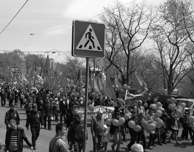Майские праздники в сегодняшней России, всё ещё переживающей кошмарную явь рыночного безумия, всегда оставляют двойственные чувства. Когда шагаешь в колонне КПРФ от Дальзавода до Привокзальной площади к памятнику Ильичу и над тобой реют алые стяги Великой страны по имени Союз Советских Социалистических Республик, кажется, что ты, наконец, очнулся, вышел из многолетней спячки и вернулся в ту, настоящую жизнь, из которой тебя выплеснула четверть века назад на пустынный берег какого-то сказочного Зазеркалья последняя грязная волна перестройки.