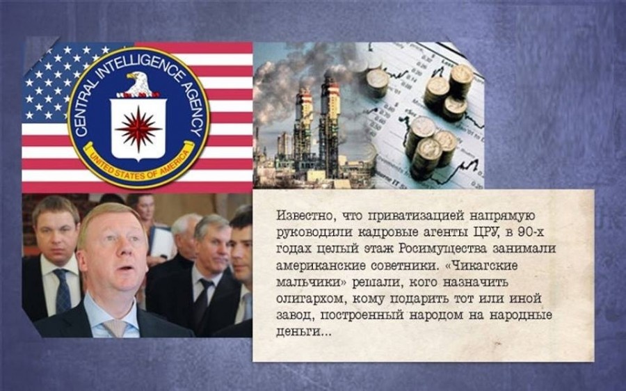 С приходом капитализма, когда Ельцин, Гайдар, Чубайс и иже с ними продали нашу свободу, независимость, наш суверенитет американцам, обменяв их на доллары. С тех пор все реформы в России проводились (и проводятся сегодня) только по американским инструкциям. Точнее – по приказу из Вашингтона. Когда ещё Чубайс «рулил» правительством, там кадровых сотрудников из ЦРУ было больше, чем самих министров. Они сидели прямо в министерствах и руководили ими.