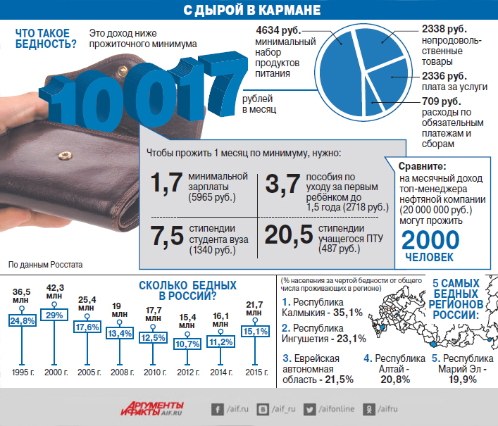 Это даже не уровень бедности, а самой настоящей нищеты. И чтобы от неё избавиться, нужно всего-то - обеспечить каждому хотя бы реальный прожиточный минимум. Цена вопроса просто ничтожна - какие-то 800 млрд. руб. в год! В бюджете без движения валяются более 10 триллионов руб. (10000 млрд.). Не хотят. Путин в первую очередь и, естественно, едросы в правительстве и в Госдуме.