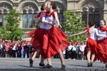 Затем перед участниками торжественной линейки выступили ребята из театральной школы «Браво» и танцевальный коллектив «Эстрея», представляющие подмосковный Королев. Они показали вокально-хореографическую композицию, посвященную героическим страницам нашей истории. После этого в небо были запущены десятки красных воздушных шариков.