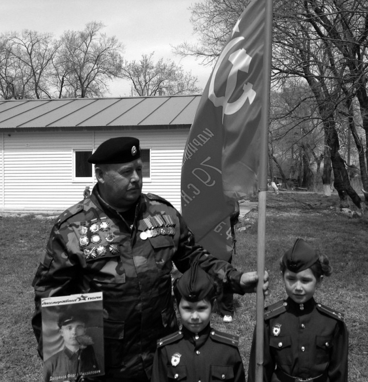 В Тереховке у обелиска погибшим героям коммунисты С.К. Абдрахманов, Е.А.Брусенко, Н.Н.Власов, С.И.Титова и Т.Ф. Устилка водрузили алые знамёна Победы. Здесь же, у памятника, С.К.Абдрахманов от имени правления Надеждинского районного отделения общественной организации «Дети войны» вручил памятную медаль этого общероссийского движения свидетелю Великой Отечественной войны Н.Н.Власову, который активно участвует в работе первички и среди ветеранов. Николай Николаевич был очень растроган этой оценкой его работы и заявил, что и впредь будет прикладывать все усилия для патриотического воспитании молодёжи, а также в деятельности первички.