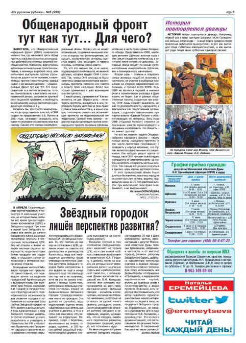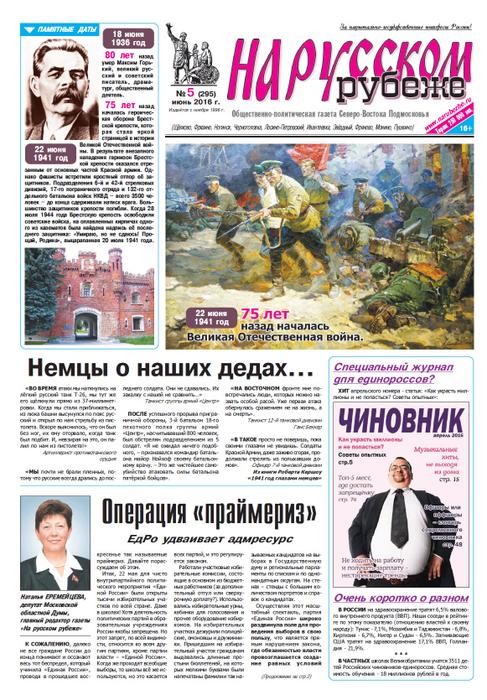 Вышел в свет июньский номер газеты «На русском рубеже», издаваемой коммунистами Северо-Востока Подмосковья.