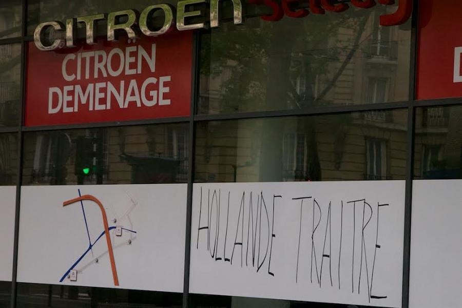 Париж в эти дни не похож на себя. Город непривычно тих, на большинстве улиц немноголюдно. Всё затихло в ожидании событий. Францию захлёстывает волна народного протеста против политики президента Олланда, именующего себя социалистом, но начавшего проводить радикальную либеральную экономическую политику. В его «активе» попытки увеличить продолжительность рабочей недели, ужесточить трудовое законодательство, упростив процедуру увольнения работников. Эти меры президент протаскивает в обход парламента, что особенно возмутило французов. «Олланд — предатель» - гласит надпись на витрине разорившегося автосалона «Ситроен».