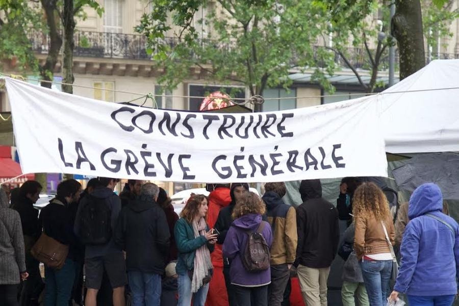 Подчёркивают тяжёлую атмосферу, царящую в городе, низкие дождевые тучи. Из них уже несколько дней подряд идёт дождь, вызвавший наводнение. Подобно дождевым каплям каждый вечер французы стекаются на площадь Республики. Непогода их не смущает. Здесь идёт бессрочная акция протеста, пока, впрочем, выглядящая мирной. Стоит палаточный лагерь. Над площадью висит лозунг «Мы строим всеобщую забастовку». Среди этих строителей невозможно определить людей какой-то определённой политической принадлежности. Людское море, постепенно затопляющее площадь, вобрало в себя прежде всего молодёжь, которую политика президента лишает каких-либо перспектив в жизни.