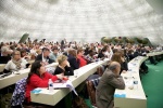 Открыла мероприятие Лидия Самарбакш, отвечающая в ФКП за международные отношения. Она подчеркнула, что здание, построенное Нимейером и принявшее это заседание, издавна является символом борьбы за мир и солидарность. Представитель ФКП особенно отметила необходимость борьбы против милитаризации мировой политики. Коснулась Лидия Самарбакш и внутренней ситуации во Франции. Коммунисты критикуют президента Олланда за его внутреннюю политику, загнавшую страну в кризис. Резкого осуждения заслуживает и его внешнеполитический курс, нацеленный на безоговорочную поддержку политики США. «Мы должны вместе бороться против неолиберальной атаки!» - заключила Лидия Самарбакш.