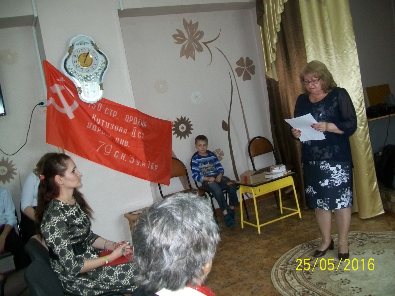 Полагаем, данное мероприятие запомнится детям надолго. Хобта В. В. рассказывал о Великой Отечественной войне и о Знамени Победы (копию которого мы представили на данном мероприятии), авторские стихи о подвиге Советского народа читали Видякина А.Ф. и Хильков А.П.