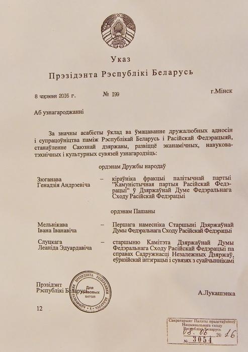В начале заседания член Президиума, секретарь ЦК КПРФ, координатор фракции КПРФ в Государственной Думе ФС РФ С.Н. Решульский поздравил от имени всей фракции Г.А. Зюганова и первого заместителя Председателя ЦК КПРФ И.И. Мельникова с наградами Республики Беларусь. Геннадий Андреевич был награжден Орденом дружбы народов, а Иван Иванович – Орденом почета.