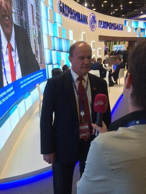 Лидер КПРФ Г.А. Зюганов принимает участие в Петербургском международном экономическом форуме. По просьбе журналистов, он поделился своими впечатлениями от этого крупнейшего внешнеполитического мероприятия.