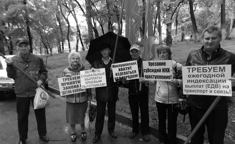Место проведения пикета – возле Артёмовского отдела департамента труда и социального развития Приморского края – было выбрано не случайно. Именно здесь, в тёплых, светлых кабинетах принимаются решения о начислении субсидий на оплату жилищно-коммунальных услуг, предоставлении гражданам иных мер социальной поддержки. Начиная с прошлого года, чиновники Отдела вынуждены ежедневно вступать в нешуточную схватку с десятками льготников, до предела возмущённых непрекращающимся урезанием социальных выплат.