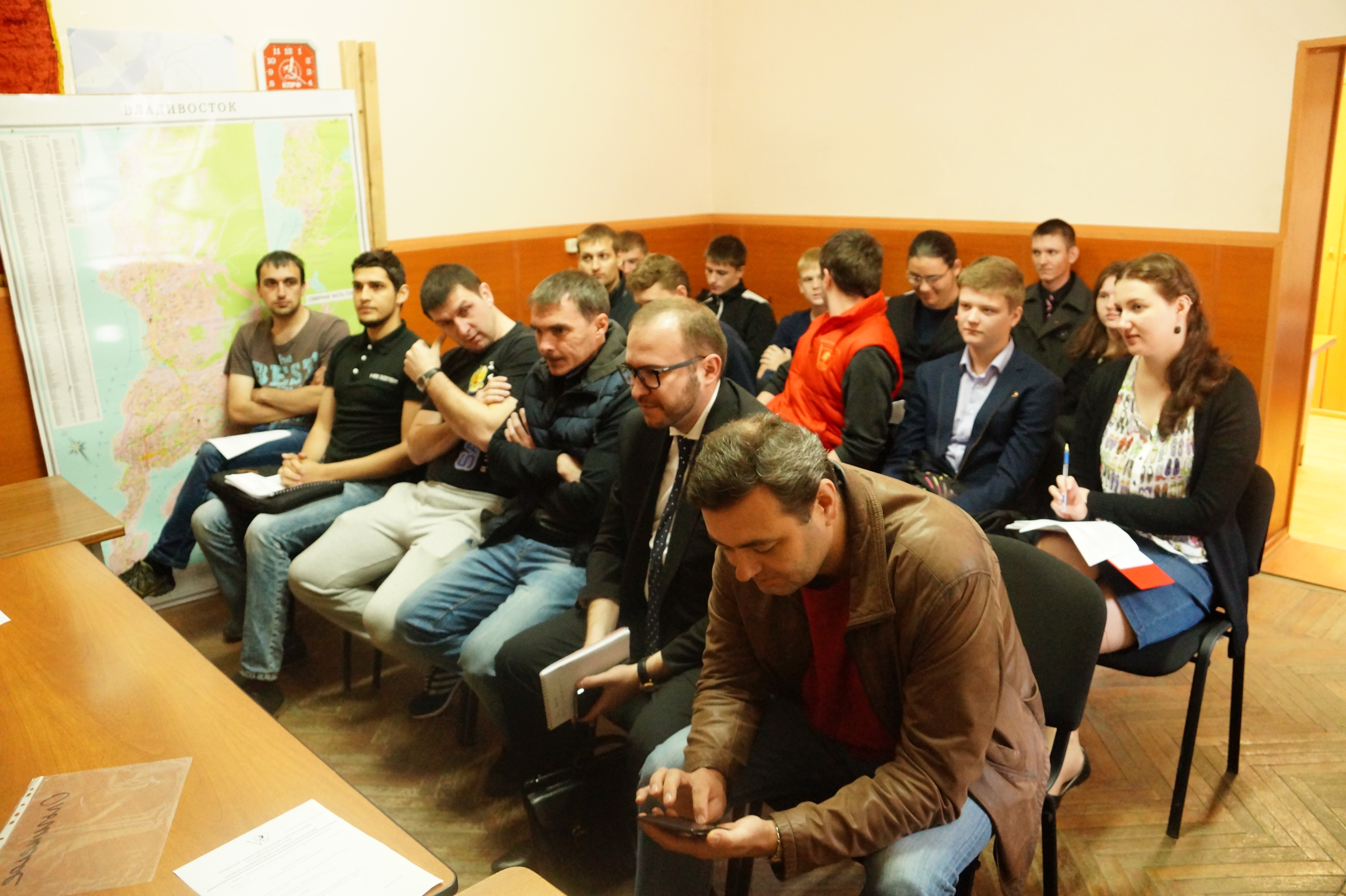 С приветственным словом и о задачах Ленинского комсомола выступил первый секретарь Приморского краевого отделения КПРФ А.Н. Долгачев: «У многих из вас ребята не будет традиционного летнего отдыха, кто то отправится в агитационные поездки по Приморскому краю, а кто-то будет помогать здесь во Владивостоке организовывать пикеты по раздаче агитационного материала. 18 сентября все силы партии и комсомола будут брошены на организацию контроля за ходом голосования». О том как важен контроль на выборах и как искать людей на организации контроля рассказали члены Комитета ПКО ЛКСМ РФ Артем Самсонов и Максим Шинкаренко.